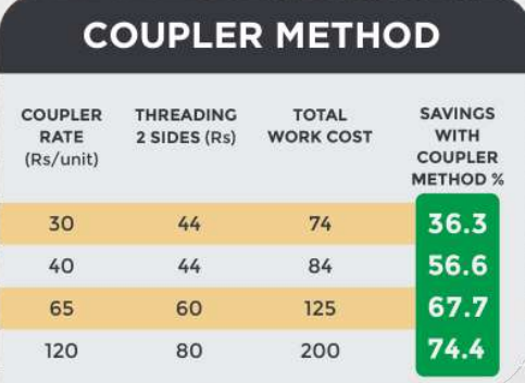Streamline construction processes with quick and efficient threaded connections. Save valuable time compared to conventional methods.